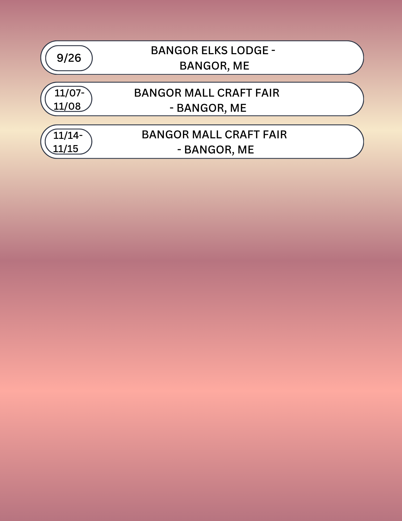 Stop by our booth to browse in person, chat about custom orders, or just say hello! Keep an eye on this page for updated dates and locations — we’re always adding more events as the season rolls on.